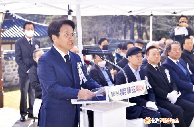 °±âÁ¤ ±¤ÁÖ½ÃÀåÀº Ã߸ð»ç¿¡¼ ¡°Á¤Áö À屺ÀÇ 631ÁÖ±âÀÎ µ¿½Ã¿¡ ¼ø±¹¼±¿ÀÇ ³¯À» ¸Â¾Æ ³ª¶ó¿Í ¹é¼ºÀ» À§ÇØ Çå½ÅÇÑ À屺ÀÇ °í±ÍÇÑ »î°ú Á¤½ÅÀ» ¹Þµé°Ú´Ù¡±¸ç ¡°À屺Àº ¿ª»ç ¼Ó È£³²À» »ó¡ÇÏ´Â ÀǷοòÀÌÀÚ È£³²ÀÌ ÁöÄѿ ½Ã´ëÁ¤½ÅÀ̾ú´Ù¡±°í ¸»Çß´Ù.