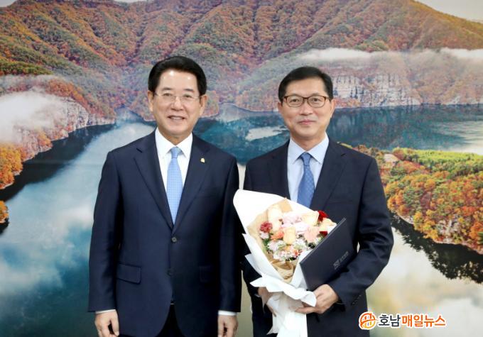 ½ÅÀÓ °¼ºÈÖ ¿øÀåÀº Áö³ 11ÀÏ Àü³²µµÀÇȸÀÇ Àλçû¹®È¸¸¦ ÅëÇØ µµ´ö¼º, °æ¿µ´É·Â, Á¤Ã¥¼öÇà´É·Â, »çȸ¼ºñ½º¿ø ¿î¿µ ºñÀü µîÀ» °ËÁõ¹Þ°í, Âü¿©ÀÇ¿ø 12¸íÀÇ ¸¸ÀåÀÏÄ¡·Î Àλçû¹® º¸°í¼ ¡®Àû°Ý¡¯ ÆÇÁ¤À» ¹Þ¾Æ 17ÀÏ ±è¿µ·Ï Àü³²µµÁö»ç·ÎºÎÅÍ ÀÓ¸íÀåÀ» ¹Þ¾Ò´Ù.