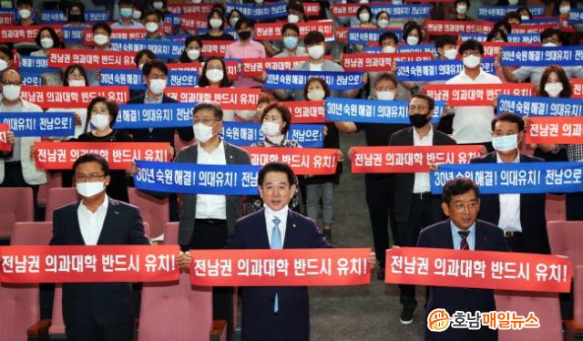 ÇÑÆí, ±è¿µ·Ï Àü¶ó³²µµÁö»ç´Â ¡°Àü³²µµ´Â Àǰú´ëÇÐ À¯Ä¡¸¦ À§ÇØ Áö³ 30³â°£ Á¤ºÎ¿Í ±¹È¸¿¡ ´Ù°¢ÀûÀÎ ³ë·ÂÀ» ±â¿ï¿© ¿ÔÀ¸³ª ¾ÆÁ÷±îÁö Àǰú´ëÇÐ À¯Ä¡´Â Àü³² µµ¹ÎÀÇ ¼÷¿ø»ç¾÷À¸·Î ³²¾ÆÀÖ´Ù¡±¸ç ¡°Àü³²µµ³» Àǰú´ëÇÐ À¯Ä¡¸¦ ÅëÇØ Áö¿ª¹ßÀüÀ» °ßÀÎ ÇØ ³ª°¥ ¼ö ÀÖµµ·Ï ÃÑ·ÂÀ» ´ÙÇØ ´ëÀÀÇÏÀÚ¡±°í °Á¶Çß´Ù.