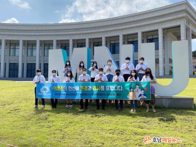 Áö³ 19ÀÏ È£³²´ë LINC+»ç¾÷´Ü(¾ç½ÂÇÐ ´ÜÀå)À¸·ÎºÎÅÍ Áö¸ñÀ» ¹Þ¾Æ ¸ñÆ÷´ë LINC+»ç¾÷´Ü ´ÜÀå°ú ±³Á÷¿øµéÀÌ 70Áֳ⠱â³ä°ü ¾Õ¿¡¼ Äڷγª19 Àå±âÈ·Î °í»ýÇÏ´Â ÀÇ·áÁø¿¡ ´ëÇÑ °í¸¶¿ò°ú Á¸°æÀ» ´ãÀº ¼ö¾î¸¦ ÃëÇØ ÀÇ·áÁø¿¡ ´ëÇÑ °¨»çÇÔÀ» Àü´ÞÇß´Ù.