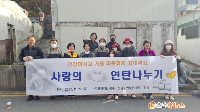 À̹ø ¡®22³â ±è±ÙÅÂÀç´Ü »ç¶ûÀÇ ¿¬Åº³ª´©±â ºÀ»çȰµ¿¡¯¿¡´Â ±è±ÙÅÂÀç´Ü ±¤ÁÖ ‧ Àü³²ÁöºÎ ½Å¼öÁ¤(±¤ÁÖ±¤¿ª½ÃÀÇ¿ø) ¿î¿µÀ§¿øÀåÀ» ºñ·ÔÇÑ È¸¿ø 15¸íÀÌ Âü¼®ÇÑ °¡¿îµ¥ ±¤ÁÖÁö¿ª Ãë¾à°èÃþÀ» ´ë»óÀ¸·Î 6°¡±¸¿¡ ¿¬Åº 1,800ÀåÀ» Àü´ÞÇϸç ÀÌ¿ôÀÇ µû¶æÇÑ °Ü¿ï³ª±â¿¡ ¿Â±â¸¦ ºÒ¾î³Ö¾ú´Ù.