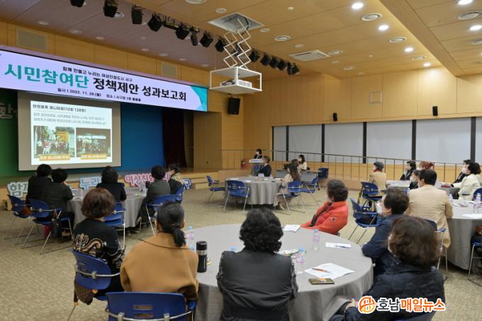 ÇÑÆí, ¼±¸¿¡ °ÅÁÖÇÏ´Â ÁֹΠ47¸íÀ¸·Î ±¸¼ºµÈ ½Ã¹ÎÂü¿©´ÜÀº ¸Å¿ù Á¤±âÀû Ȱµ¿À» ÅëÇØ ¿©¼ºÀÇ ½Ã°¢À» ¹Ý¿µÇÑ Á¤Ã¥ Á¦¾È, ¿©¼ºÄ£È °ø°£ ¹× Á¤Ã¥ ¸ð´ÏÅ͸µ, ¿©¼º¾È½Éº¸¾È°ü µîÀÇ È°µ¿À» ¼öÇàÇϰí ÀÖ´Ù.