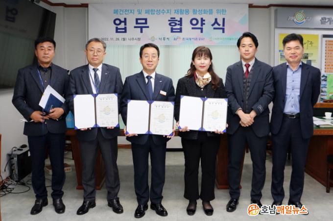 ³ªÁÖ½Ã(½ÃÀå À±º´ÅÂ)´Â Áö³ 28ÀÏ Çѱ¹³ó¾îÃ̰ø»ç, (»ç)Çѱ¹ÀüÁöÀçȰ¿ëÇùȸ¿Í ¡®Æó°ÇÀüÁö ¹× ÆóÇÕ¼º¼öÁö ÀçȰ¿ë Ȱ¼ºÈ¡¯¸¦ À§ÇÑ ¾÷¹«Çù¾àÀ» ü°áÇß´Ù°í 29ÀÏ ¹àÇû´Ù.