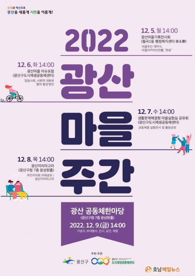 ÇÑÆí, ¡®2022 ±¤»ê ¸¶À»ÁÖ°£¡¯ Çà»ç¿Í °ü·ÃÇØ ÀÚ¼¼ÇÑ »çÇ×Àº ±¤»ê±¸µµ½ÃÀç»ý°øµ¿Ã¼¼¾ÅÍ(062-959-8526)À¸·Î ¹®ÀÇÇÏ¸é µÈ´Ù.