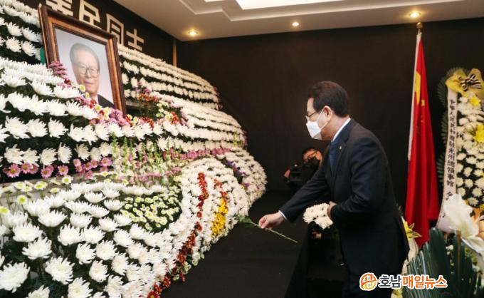 ±è¿µ·Ï Áö»ç´Â À̳¯ ºÐÇâ¼Ò¿¡¼ ÇåÈ¿Í ¹¬³äÀ¸·Î Àå Àü ÁÖ¼®À» Ã߸ðÇß´Ù. ¶ÇÇÑ Á¶¹®·Ï¿¡ ¡°ÇÑÁß¼ö±³¿Í ±³·ùÇù·ÂÀÇ ÁÖÃåµ¹À» ³õÀ¸½Å À弹ΠÀü ÁÖ¼®´ÔÀÇ ¿µ¸éÀ» ±â¿øÇÏ¿À¸ç Áß±¹ ±¹¹Î²² ±íÀº À§·ÎÀÇ ¸»¾¸À» µå¸³´Ï´Ù¡±¶ó°í Àû¾ú´Ù.