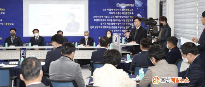 22°³ ½Ã¡¤±º ±³À°Àå°ú 12°³ Á÷¼Ó±â°üÀå µî 42¸íÀÌ Âü¼®ÇÑ °¡¿îµ¥ ¿¸° À̳¯ Á¤Ã¥Çùȸ¿¡¼´Â¡®Áö¿ª°ú ²÷ÀÓ¾ø´Â ¼ÒÅ롤Çù·Â¡¤¿¬´ë, Àü³²Çü ±³À°ÀÚÄ¡ ½ÇÇö¡¯À» ÁÖÁ¦·Î Áö¿ª°ú ±³À°ÀÇ »ó»ý ¹æ¾È¿¡ ´ëÇÑ ³íÀǰ¡ ÀÌ·ïÁ³´Ù.