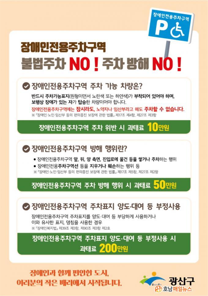¡®ÁÖÂ÷°¡´ÉÇ¥Áö¡¯ ¾øÀÌ Àå¾ÖÀÎÀü¿ëÁÖÂ÷±¸¿ª¿¡ ÁÖÂ÷ÇÑ ÇàÀ§, Àå¾ÖÀÎÀü¿ëÁÖÂ÷±¸¿ª ÀÌ¿ëÀ» ¹æÇØÇϰųª ºÎÁ¤ »ç¿ëÇÑ ÇàÀ§ µîÀ» »ìÇǰí, À§¹Ý »çÇ× È®ÀÎ ½Ã °úÅ·Ḧ ºÎ°úÇÒ ¹æÄ§ÀÌ´Ù.