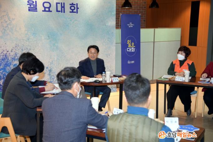 ¡®¿ù¿ä´ëÈ¡¯´Â °¢°è°¢ÃþÀÇ »ç¶÷µé°ú ±³À°¡¤Ã»³â¡¤°æÁ¦¡¤Ã¢¾÷ µî 8°³ ºÐ¾ß ÁÖ¿ä Çö¾È¿¡ ´ëÇØ À̾߱âÇÏ´Â ÀÚ¸®·Î ¡®³»¡ÙÀÏÀÌ ºû³ª´Â ±âȸµµ½Ã ±¤ÁÖ¡¯ ½ÇÇöÀ» À§ÇÑ ½ÃÀå ÁÖÀç ´ëÈ Ã¢±¸´Ù. 12¿ù19ÀÏÀº °ñ¸ñ»ó±Ç ºÐ¾ß¸¦ ÁÖÁ¦·Î ¿µÎ ¹øÂ° ¿ù¿ä´ëȸ¦ ¿¬´Ù.