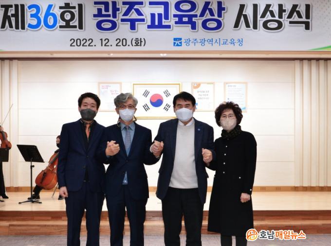 ÇÑÆí, ÀÌÁ¤¼± ±³À°°¨Àº ¡°¼ö»óÇϽŠºÐµéÀÇ °øÀûÀº ¿ì¸® ±¤ÁÖ±³À°ÀÇ Å« ¹ßÀÚÃë·Î ³²¾Æ ¿À·¡µµ·Ï ±â¾ïµÉ °Í¡±À̶ó¸ç ¡°¿À´Ã Çà»ç°¡ ¸ðµç ±³Á÷¿øµéÀÌ ¼ö»óÇϽŠºÐµéÀÇ °øÀûÀ» º»¹Þ¾Æ ¹Ì·¡¸¦ ¿¾î°¡´Â Çõ½ÅÀû Æ÷¿ë±³À° ½ÇÇöÀ» À§ÇØ °¢ÀÚ°¡ ÃÖ¼±À» ´ÙÇÏ´Â °è±â°¡ µÇ±â¸¦ ±â´ëÇÑ´Ù¡±°í ¸»Çß´Ù.