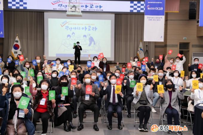 ÃÑ 256ÆÀ 1060¸íÀÌ Âü¿©ÇÑ °¡¿îµ¥, ±¤»ê±¸´Â °¡Àå ¸¹Àº 114ÆÀ(456¸í)ÀÌ ´Ù·é Àüµ¿Å±º¸µå ¹®Á¦¸¦ ´ëÇ¥ ÀÇÁ¦·Î Á¤Çϰí, ³íÀǸ¦ ¹ßÀü½ÃŰ´Â ¼÷ÀÇÇÏ´Â ÀåÀ¸·Î ÀÚÄ¡¾Æ°í¶ó¸¦ ¸¶·ÃÇß´Ù.
