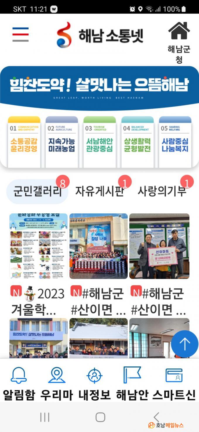 ÇØ³²±º ¼ÒÅë³ÝÀº Àü±¹ ÁöÀÚü ÃÖÃÊ·Î °³¹ßµÈ ±º¹ÎÀü¿ë ¾ÛÀ¸·Î ³» °íÀå Á¤º¸¸¦ ºñ·ÔÇØ »ýȰ¹Î¿ø¼ºñ½º, °¢Á¾ ¾Ë¸²Á¤º¸, ¸¶À»¼Ò½Ä±îÁö ½º¸¶Æ®Æù¿¡¼ ½Ç½Ã°£À¸·Î ¹Þ¾Æº¼ ¼ö ÀÖ¾î ±º¹ÎÀÌ Á÷Á¢ Âü¿©ÇÏ´Â ±ºÁ¤ ¼ÒÅë°ø°£À¸·Î ÀÚ¸®¸Å±èÇϰí ÀÖ´Ù.