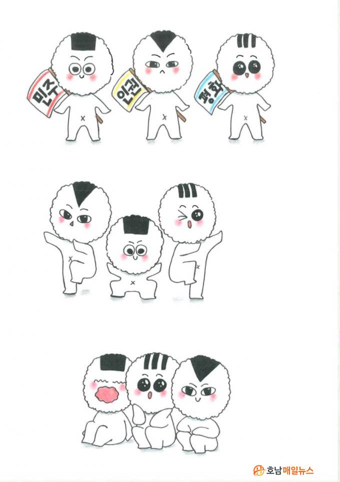 ij¸¯ÅÍ ÃâǰÀÛÀ¸·Î´Â Âü½Å¼ºÀ» Àß »ì¸° ¿©·¯ ÀÛǰµéÀÌ µ¸º¸¿´´Ù. ÀÌ Áß 5¡¤18¹ÎÁÖȿ ´ç½Ã ±¤ÁֽùÎÀÌ ¸¸µç ÁÖ¸Ô¹äÀÌ ¹ÎÁÖÁÖÀÇ, ÆòÈ, ÀαÇÀÇ »ó¡¹°À̶ó´Â »ý°¢À» ´ã¾Æ ÁÖ¸Ô¹äÀ» Ȱ¿ëÇØ ź»ýÇÑ Ä³¸¯ÅÍ ¡®¹ÎÁÖ‧ÀαÇ‧ÆòÈ¡¯°¡ ÃÖÁ¾ ¿ì¼öÀÛÀ¸·Î ¼±Á¤µÆ´Ù.