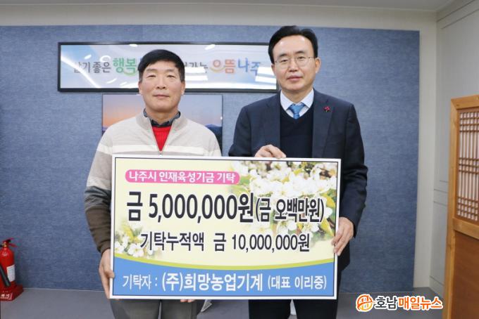 ÇÑÆí, À±º´Å ³ªÁÖ½ÃÀåÀº ¡°¿À·£ ±â°£ Áö¿ª °øµ¿Ã¼ ¹ßÀü°ú ÀÎÀçÀ°¼ºÀ» À§ÇØ ³ª´®°ú Çå½ÅÀ» ¾Æ³¢Áö ¾Ê¾Æ¿Â À̸®Áß ´ëÇ¥²² °¨»çµå¸°´Ù¡±¶ó¸ç ¡°Çлý ÀåÇбݰú Àç´Ü ±³À°½ÃÃ¥ ÃßÁø¿¡ ¼ÒÁßÈ÷ »ç¿ëÇϰڴ١±¶ó°í ¸»Çß´Ù.