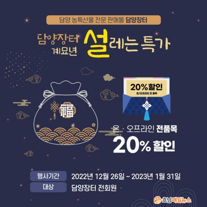 Çà»ç±â°£ ³» Åùè ÁÖ¹®Àº 1¿ù 17ÀϱîÁö ½Åû°¡´ÉÇÏ¸ç ¿Â¶óÀÎ(www.damyangmk.kr)°ú ¸ð¹ÙÀÏ ¾Û ±¸¸Å°í°´ Áß 9¸íÀÇ ±¸¸Å¿ÕÀ» ¼±Á¤ÇØ Çѿ켱¹°¼¼Æ®, ´ë½£¸¼Àº ´ã¾ç½Ò µîÀ» ÁõÁ¤ÇÏ´Â »çÀºÇà»çµµ ÁøÇàÇÑ´Ù.