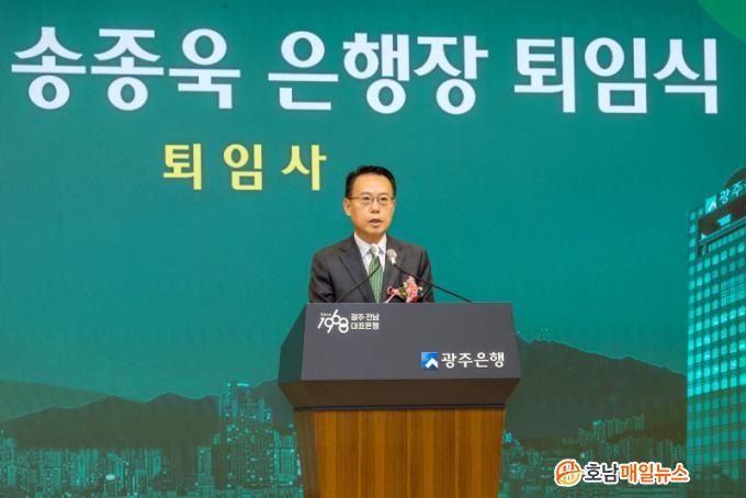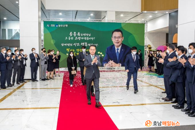 ¼ÛÁ¾¿í ±¤ÁÖÀºÇàÀåÀº ÅðÀӽĿ¡¼ ¡°Ã¹ Á÷ÀåÀÎ ±¤ÁÖÀºÇà¿¡ Çà¿øÀ¸·Î ÀÔÇàÇØ ±¤ÁÖÀºÇà ÃÖÃÊ ÀÚÇàÃâ½Å ÀºÇàÀåÀ» Áö³»±â±îÁö ±¤ÁÖÀºÇà°ú ÇÔ²²ÇÑ 30¿©³âÀÇ »îÀº Àλý¿¡¼ ¹«¾ù°úµµ ¹Ù²Ü ¼ö ¾ø´Â °ªÁø ½Ã°£À̾ú´Ù¡±°í ¿îÀ» ¶¼¸ç, ¹Ï°í µû¶ó¿ÍÁØ Á÷¿øµé°ú ±¤ÁÖÀºÇà¿¡ º¯ÇÔ¾ø´Â ½Å·Ú¿Í ¼º¿øÀ» º¸³»ÁֽŠÁö¿ª¹Î ¹× °í°´¿¡°Ô °¨»çÀÇ ¸¶À½À» ÀüÇß´Ù.