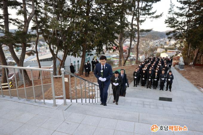 À̳¯ Âü¹è¿¡´Â º¸¼º±º¼ö, º¸¼º±ºÀÇȸ ÀÇÀå°ú Àü³²µµÀÇ¿ø ¹× ±ºÀÇ¿ø, °£ºÎ °ø¹«¿ø µîÀÌ ÇÔ²²ÇßÀ¸¸ç ¼ø±¹¼±¿°ú È£±¹¿µ·ÉÀÇ ¼þ°íÇÑ ³ÌÀ» ±â¸®°í Áߴܾø´Â º¸¼º±º ¹ßÀüÀ» À§ÇÑ °¢¿À¿Í ±»Àº °áÀǸ¦ ´ÙÁ³´Ù.