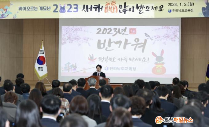 ±è´ëÁß ±³À°°¨Àº ½Å³â»ç¸¦ ÅëÇØ ¡°2023³â »õÇØ´Â µµ¹Î°ú ±³À°°¡Á·¿¡°Ô ¾à¼ÓÇß´ø Àü³²±³À° ´ëÀüȯÀ» ½ÃÀÛÇÏ´Â ½ÇÁúÀûÀÎ ¿ø³â¡±À̶ó¸ç ¡°±× Ãâ¹ßÁ¡Àº °øºÎÇÏ´Â Çб³À̸ç, ÇлýµéÀÌ ¿½ÉÈ÷ °øºÎÇÏ¸ç ²ÞÀ» ÆîÄ¡µµ·Ï ȯ°æÀ» ¸¸µé¾îÁÖ´Â °Í.¡±À̶ó°í °Á¶Çß´Ù.