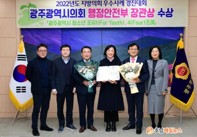 Á¤¹«Ã¢ ±¤ÁÖ±¤¿ª½ÃÀÇȸ ÀÇÀåÀº 2ÀÏ ½ÃÀÇȸ ¿¸°½Ã¹ÎȦ¿¡¼, 2022³âµµ Çà¾ÈºÎ ÁÖÃÖ ¡®Áö¹æÀÇȸ ¿ì¼ö»ç·Ê°æÁø´ëȸ¡¯ °á°ú ¡®±¤ÁÖ±¤¿ª½Ã û¼Ò³â Æ÷À¯!(For Youth), 4(Four)Á¶·Ê¡¯·Î ¿ì¼ö»óÀ» ¹Þ°í ¹ßÀÇÀÚÀÎ ½Å¼öÁ¤ ÀÇ¿ø¿¡°Ô »óÀåÀ» Àü¼öÇß´Ù.