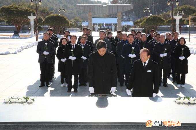 À̳¯ Âü¹è¿¡´Â Á¦12´ë Àü³²µµÀÇ¿ø ´ëºÎºÐÀÌ Âü¼®ÇÏ¿© ÀÚ½ÅÀ» ¾Æ³¦¾øÀÌ Èñ»ýÇÑ °íÀÎÀÇ Èñ»ýÁ¤½ÅÀ» ±â¸®°í, Áö¹æÀÇȸ µ¶¸³¿¡ µû¸¥ Áö¹æÀÇȸ ¹ÎÁÖÁÖÀÇÀÇ ½ÇÇö°ú 200¸¸ Àü³²µµ¹ÎÀ» À§ÇÑ º¯ÇÔ¾ø´Â ÀÇÁ¤È°µ¿À» ´ÙÁüÇß´Ù.