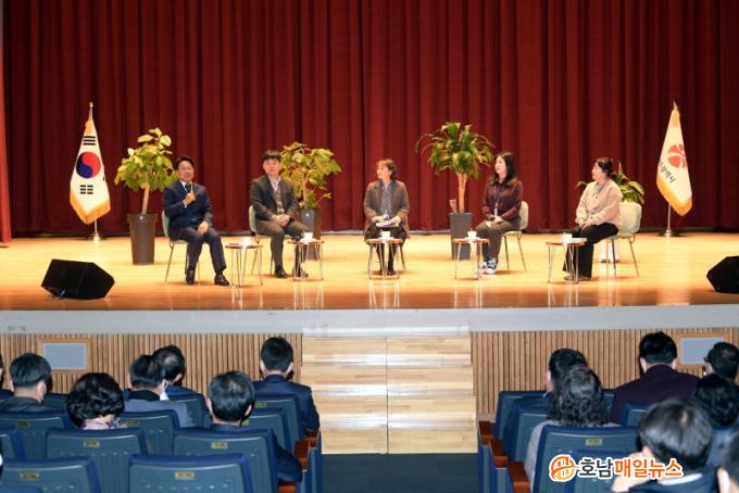 À̳¯ Çà»ç¿¡´Â ½Ç¡¤±¹Àå, Á÷¿ø µî 600¿© ¸íÀÌ Âü¼®ÇÑ °¡¿îµ¥ 4¸íÀÇ Á÷¿ø ´ëÇ¥¿¡°Ô Áú¹®À» ¹Þ°í ° ½ÃÀåÀÌ Áï¼®¿¡¼ ´äÇÏ´Â ´ö´ãÅäÅ©·Î ÈÇÕÀÇ ÀÚ¸®°¡ µÆ´Ù.