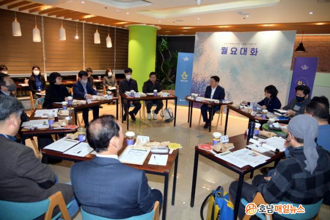 ¡®¿ù¿ä´ëÈ¡¯´Â °¢°è°¢ÃþÀÇ »ç¶÷µé°ú ±³À°¡¤Ã»³â¡¤°æÁ¦¡¤Ã¢¾÷ µî 8°³ ºÐ¾ß ÁÖ¿ä Çö¾È¿¡ ´ëÇØ À̾߱âÇÏ´Â ÀÚ¸®·Î ¡®³»¡ÙÀÏÀÌ ºû³ª´Â ±âȸµµ½Ã ±¤ÁÖ¡¯ ½ÇÇöÀ» À§ÇÑ ½ÃÀå ÁÖÀç ´ëÈ Ã¢±¸´Ù. 1¿ù16ÀÏ¿¡´Â û¼Ò³â ÀÚÀ²°ø°£ Á¶¼º¹æ¾ÈÀ» ÁÖÁ¦·Î 15¹øÂ° ¿ù¿ä´ëȸ¦ ¿¬´Ù.