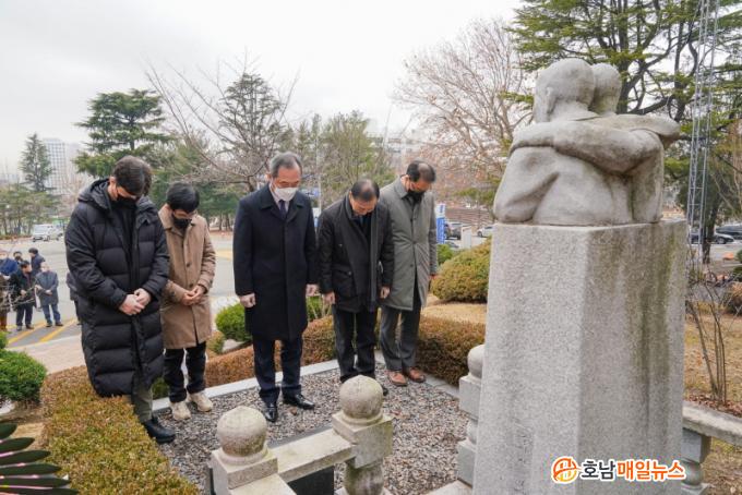 ÇÑÆí, ¹Î¿µµ· ÃÑÀåÀº ¡°¿À´ÃÀÇ ÀÚ¸®´Â °ú°Å ¼±¹è ±³¼ö´Ôµé°ú µ¿¹®ÀÇ Çå½Å°ú Èñ»ýÀ» ±â¸®´Â ÀÏÀÎ µ¿½Ã¿¡ Á¶¼±´ë°¡ °ÇÇÐ 100ÁÖ³âÀ» ÇâÇØ ³ª¾Æ°¥ ¼ö ÀÖ´Â ¿øµ¿·ÂÀÌ µÉ °Í¡±À̶ó¸ç ¡°1¡¤8Ç×ÀïÀÇ Á¤½ÅÀ¸·Î ¿ì¸® ´ëÇÐÀÇ Áö¼ÓÀûÀÎ ¹ßÀüÀ» ÃßÁøÇÏ´Â µ¥ ¿Â ÈûÀ» ´ÙÇϰڴ١±°í ¹àÇû´Ù.