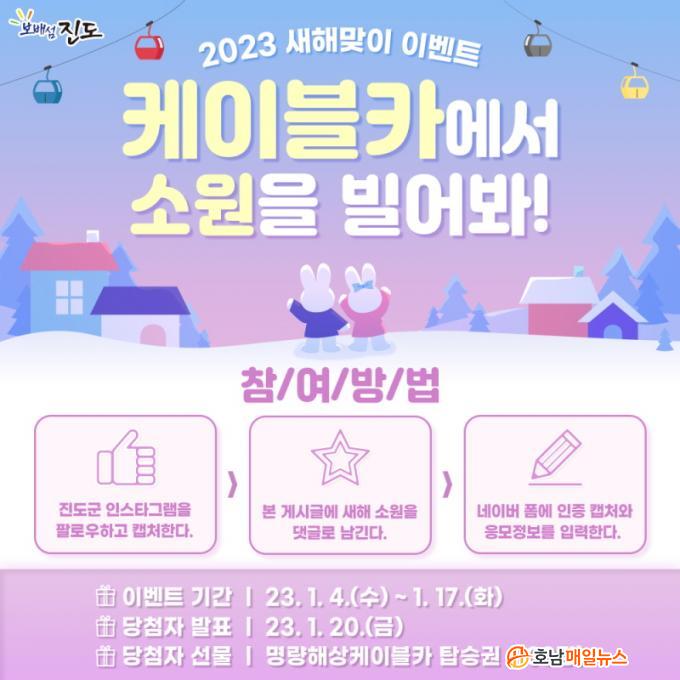 Áøµµ±º °ø½Ä ÀνºÅ¸±×·¥ÀÇ À̺¥Æ® °Ô½Ã±Û¿¡ 2023³â »õÇØ ¼Ò¿øÀ» ´ñ±Û·Î ³²±â°í, °Ô½Ã±ÛÀÇ ÁÁ¾Æ¿ä, Áøµµ±º ÀνºÅ¸±×·¥ ÆÈ·Î¿ì ½Åû, Ä£±¸¼Òȯ±îÁö ¿Ï·áÇÑ Âü°¡ÀÚ¿¡°Ô ¸í·®ÇØ»óÄÉÀ̺íÄ« ž½Â ±³È¯±ÇÀ» Á¦°øÇÑ´Ù.