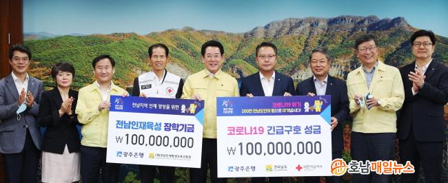 ±è¿µ·Ï Àü¶ó³²µµÁö»ç´Â ¡°Àü³²ÀÇ Áß¼Ò±â¾÷°ú ¼Ò»ó°øÀÎ µîÀ» À§ÇØ Å« ¿ªÇÒÀ» Çϰí ÀÖ´Â ±¤ÁÖÀºÇàÀÌ ¡®Äڷγª19¡¯ ±Øº¹°ú ÀÎÀçÀ°¼ºÀ» À§ÇÑ ¼º±ÝÀ» ±âÅ¹ÇØÁà ¸Å¿ì °¨»çÇÏ´Ù¸ç, Àü¶ó³²µµ¿Í µµ¹ÎµéÀÌ ¾î·Á¿î »óȲÀ» ÇÔ²² ±Øº¹Çϴµ¥ Å« µµ¿òÀÌ µÉ °ÍÀÌ´Ù¡±°í ¸»Çß´Ù.