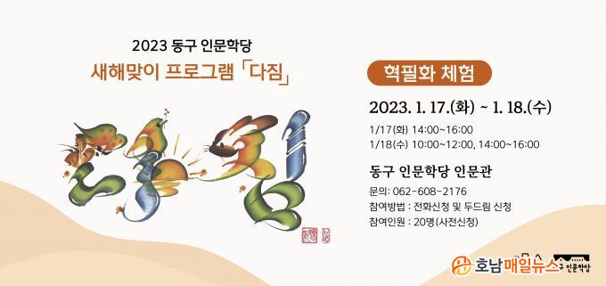 »õÇØ¸ÂÀÌ ¡®´ÙÁü¡¯À» ÁÖÁ¦·Î ÇÑ À̹ø ÇõÇÊÈ Ã¼Çè ÇÁ·Î±×·¥Àº 17~18ÀÏ ÃÑ 4ȸ¿¡ °ÉÃÄ È¸´ç 20¸í¾¿ Âü¿©ÇØ µ¿±¸ Àι®Çд翡¼ ÁøÇàµÈ´Ù. ÇõÇÊÈ´Â ³³ÀÛÇÑ °¡Á×À» ÇÑ È¹À¸·Î ÇØ, ¹®ÀÚ¿Í ±×¸²À» °áÇÕÇÑ ¹®ÀÚ ±×¸²À¸·Î ±æ»ó°ú ±âº¹À» ¹ÙÅÁÀ¸·Î ÇÑ ¼¹Î dz¼ÓÀ¸·Î À̾îÁ® ¿À°í ÀÖ´Ù.