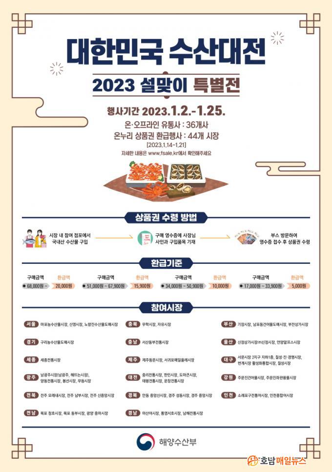 ÇÒÀÎÀº ûȣ½ÃÀå°ú µ¿ºÎ½ÃÀå ³ó¡¤Ãࡤ¼ö»ê¹° ÆÇ¸ÅÁ¡Æ÷¿¡¼ ±¹³»»ê ¹°°ÇÀ» ±¸ÀÔÇÏ¸é ½ÃÀå ³» ºÎ½º¿¡¼ ¿µ¼öÁõÀ» È®ÀÎÇÏ°í ´çÀÏ ±¸¸Å±Ý¾×ÀÇ ÃÖ´ë 30%¸¦(ÃÖ´ë 2¸¸¿ø) ¿Â´©¸®»óǰ±ÇÀ¸·Î ȯ±ÞÇØÁÖ´Â ¹æ½ÄÀ¸·Î ÁøÇàµÈ´Ù.