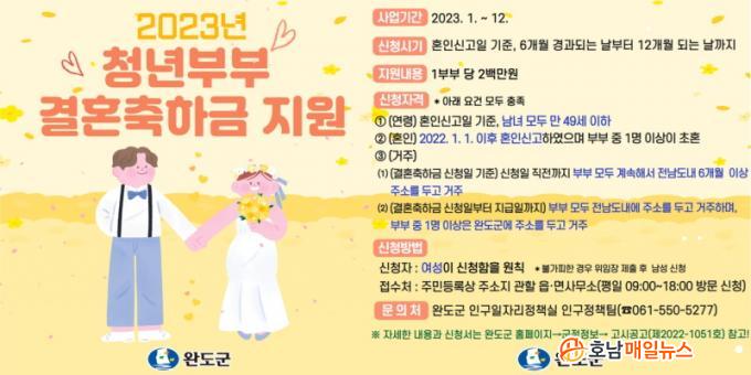 û³â ºÎºÎ °áÈ¥ ÃàÇϱÝÀº 200¸¸ ¿øÀ» Áö¿øÇÑ´Ù. ½Åû ÀÚ°ÝÀº È¥ÀÎ ½Å°íÀÏ ±âÁØ ¸¸ 49¼¼ ÀÌÇÏ, 2022³â 1¿ù 1ÀÏ ÀÌÈÄ È¥ÀÎ ½Å°í¸¦ ÇÑ Ã»³â ºÎºÎÀ̸ç, ºÎºÎ Áß 1¸í ÀÌ»óÀº ÃÊÈ¥À̾î¾ß ÇÑ´Ù.