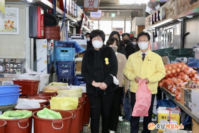 ¹Úº´±Ô ûÀåÀº ¡°¿ù°î½ÃÀå¿¡ Á÷Á¢ ¹æ¹®ÇØ »óÀκеéÀÇ ¾Ö·Î»çÇ×À» ÇöÀå¿¡¼ ûÃëÇÏ°í µÎ ¼Õ °¡µæ ÀåÀ» º¸´Ï, ¸¶À½±îÁö µçµçÇØÁö´Â ±âºÐÀÌ´Ù¡±¸ç ¡°±¤»ê½Ã¹Îµé²²¼µµ Áö¿ª »ó±ÇÀÇ È°¼ºÈ¸¦ À§ÇØ ÀüÅë½ÃÀåÀ» ¸¹ÀÌ ÀÌ¿ëÇØÁÖ½Ã±æ ´çºÎ µå¸°´Ù¡±°í ¸»Çß´Ù.