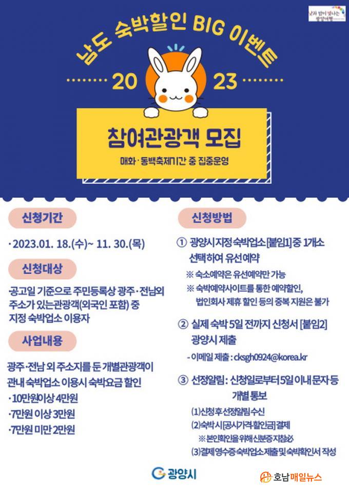ÇÑÆí, ½Ã´Â ¿À´Â 31ÀϱîÁö ³²µµ ¼÷¹ÚÇÒÀÎ BIG À̺¥Æ®¿¡ Âü¿©ÇÒ ¼÷¹Ú¾÷¼Ò Ãß°¡ ¸ðÁýÀ» ÁøÇàÇÑ´Ù. Âü¿©¸¦ Èñ¸ÁÇÏ´Â ¼÷¹Ú¾÷¼Ò´Â ±¤¾ç½Ãû ȨÆäÀÌÁö °ø°í¹®¿¡ °ÔÀçµÈ ½Åû¼¸¦ ÀÛ¼ºÇØ ¹æ¹® ¶Ç´Â µî±â¿ìÆíÀ¸·Î Á¢¼öÇÏ¸é µÈ´Ù.