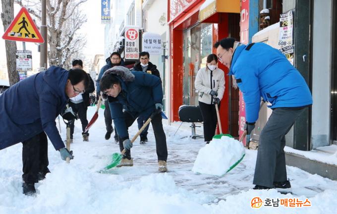 À¾¡¤¸é Áö¿ª¿¡¼µµ °¢ »çȸ´Üü, °ø¹«¿øµéÀÌ ÇÕ½ÉÇØ ÀÚü Á¦¼³ÀÛ¾÷¿¡ µ¿ÂüÇß´Ù. ¿µÇÏ 10µµ¿¡ À°¹ÚÇÏ´Â °ÃßÀ§ ¼Ó¿¡ °ø¹«¿øµéÀº ÁֹεéÀÇ º¸Çà ¾ÈÀü, ºÒÆí ÇØ¼Ò¿¡ ÁßÁ¡À» µÎ°í ¹ö½º ½Â°Àå, »ó°¡°Ç¹° ¾Õ, ±³·®, °æ»ç·Î, Àεµ °÷°÷¿¡ ½×ÀÎ ´«À» Ä¡¿ì´Âµ¥ ±¸½½¶¡À» Èê·È´Ù.