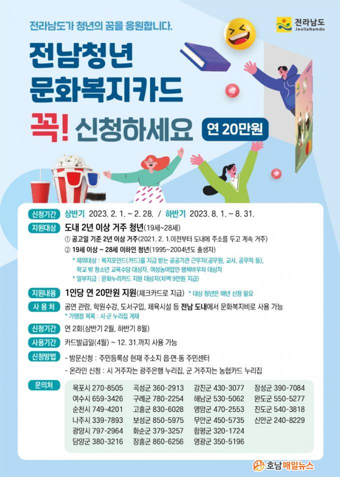 Áö¿ø´ë»óÀÚ Àû°Ý ¿©ºÎ È®ÀÎ ÈÄ 4¿ùÁß Ä«µå°¡ ¹ß±ÞµÉ ¿¹Á¤À̸ç, »ç¿ë±â°£Àº ¿Ã ¿¬¸»±îÁöÀÌ´Ù. »ç¿ëó´Â Àü³² µµ³» °ø¿¬, Àü½Ã, µµ¼, À½¾Ç, °ü±¤ µî ¹®È‧¿©°¡ Ȱµ¿¿¡ »ç¿ë °¡´ÉÇÏ´Ù.