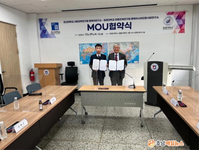 Á¶¼±´ë´Â ¾Õ¼ ¿ø±¤´ë µ¿ºÏ¾Æ½Ã¾ÆÀι®»çȸ¿¬±¸¼Ò¿¡¼µµ ¾÷¹«Çù¾à½ÄÀ» ÁøÇàÇß´Ù. Çù¾à½Ä¿¡´Â Á¶¼±´ë µ¿ºÏ¾Æ¿¬±¸¼Ò ±â±¤¼ ¼ÒÀå(Á¤Ä¡¿Ü±³Çаú ±³¼ö)À» ºñ·ÔÇØ ¿ø±¤´ë µ¿ºÏ¾Æ½Ã¾ÆÀι®»çȸ¿¬±¸¼ÒÀå ±èÁ¤Çö(öÇаú ±³¼ö) µîÀÇ °ü°èÀÚ°¡ Âü¼®Çß´Ù.