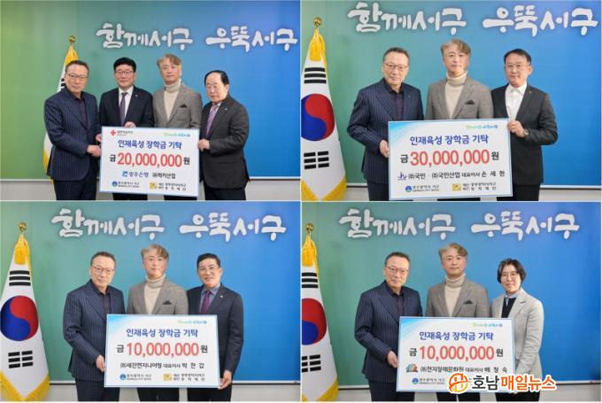 Áö³ 30ÀÏ ¡ã¢ß±¹¹Î‧¢ß±¹¹Î»ê¾÷(´ëÇ¥ ¼¼¼Çö) 3,000¸¸¿ø ¡ã¢ß¼¼Áø¿£Áö´Ï¾î¸µ(´ëÇ¥ ¹ÚÂù°©) 1,000¸¸¿ø ¡ã¢ßõÁöÀå·Ê¹®È¿ø(´ëÇ¥ ¹èâ¼÷) 1,000¸¸¿ø ¡ã´ëÇÑÀû½ÊÀÚ»ç ±¤ÁÖÀü³²Áö»ç¸¦ ÅëÇÏ¿© ¢ß±¤ÁÖÀºÇà(ÇàÀå °íº´ÀÏ) 1,000¸¸¿ø ¡ã¢ß·°Å°»ê¾÷(ȸÀå ¹ÚÈï¼®)ÀÌ 1,000¸¸¿øÀ» ±¤ÁÖ ¼±¸ ÀåÇÐÀç´Ü¿¡ ±âŹÇß´Ù.
