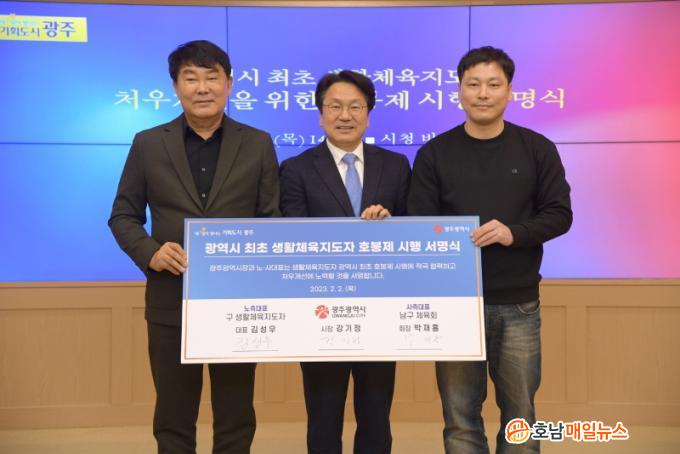 ±¤Áֽô 2ÀÏ ½Ãû ºñÁî´Ï½º·ë¿¡¼ ¡®»ýȰüÀ°ÁöµµÀÚ È£ºÀÁ¦ ½ÃÇà ¼¸í½Ä¡¯À» °³ÃÖÇß´Ù. À̳¯ Çà»ç´Â °±âÁ¤ ½ÃÀå°ú ÀÚÄ¡±¸ üÀ°È¸ ¹× »ýȰüÀ°È¸ ´ëÇ¥°¡ »ýȰüÀ°ÁöµµÀÚÀÇ Ã³¿ì °³¼±À» À§ÇØ ±¤¿ªÁöÀÚü ÃÖÃʷΠȣºÀÁ¦ µµÀÔ¿¡ ÇÕÀÇÇÏ¸é¼ ÀÌ·ïÁ³´Ù.