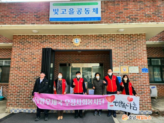 Áö³ 2ÀÏ ÀÌÁ¾Èñ ±¹Àå°ú ·ùÀºÁ¤ ¿ìÆí¹°·ù°úÀå, Áý¹è¿ø µî ¿ìü±¹ °ü°èÀÚ 7¸íÀº ´ã¾çÀ¾¿¡ À§Ä¡ÇÑ º¹Áö½Ã¼³ ºû°íÀ»°øµ¿Ã¼¿Í ¿ù»ê¸é°ú ´ã¾çÀ¾ÀÇ °¡Á¤ 2¼¼´ë¸¦ ¹æ¹®ÇØ ¼¼´ë¿¡¼ ÇÊ¿ä·Î ÇÏ´Â »ýȰ¿ëǰ°ú À§¹®¼º±Ý µî 100¿©¸¸ ¿ø »ó´çÀÇ ¹°Ç°À» Àü´ÞÇß´Ù.