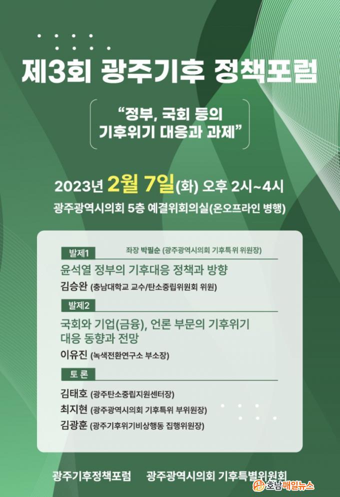 À̹ø Æ÷·³Àº °¡¹³°ú Æø¼³ µîÀ¸·Î ±¤ÁÖÁö¿ª¿¡ ±âÈĺ¯È¿¡ ´ëÇÑ À§±â°¨ÀÌ °íÁ¶µÇ´Â »óȲ¿¡¼ ±âÈÄÀ§±â Çö½ÇÀû ´ëÀÀ °úÁ¦¸¦ ¸ð»öÇϱâ À§ÇØ ¡®Á¤ºÎ, ±¹È¸ µîÀÇ ±âÈÄÀ§±â ´ëÀÀ°ú °úÁ¦¡¯¸¦ ÁÖÁ¦·Î ÁøÇàµÈ´Ù.