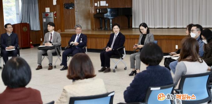 ÀÌ¿Í °ü·Ã, 7ÀÏ(È) ¿ÀÈÄ Àü¶ó³²µµ±³À°¿¬¼ö¿ø¿¡¼ ¿¸° ±è´ëÁß ±³À°°¨°ú ±³Á÷¿ø °£´ãȸ¿¡¼´Â ¡®¹Ì·¡Çü ±³¿ø¿¬¼ö ½Ã½ºÅÛ¡¯ ±¸Ãà ¹æ¾È¿¡ ´ëÇØ Çã½ÉźȸÇÑ ÀÇ°ß ±³È¯ÀÌ ÀÌ·ïÁ³´Ù.