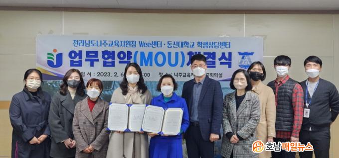À̹ø ¾÷¹«Çù¾àÀº ³ªÁÖ °ü³» ÃÊ¡¤Áß¡¤°í ÇлýµéÀÇ ½É¸®»ó´ãÀ» ´ã´çÇϰí ÀÖ´Â ³ªÁÖWee¼¾ÅÍ¿Í »óÈ£Çù·ÂÇÏ¿© ¡ã°ü³» Çлý ´ë»ó »ó´ã Áö¿ø ¡ãÀ§±â ¿¹¹æ Ȱµ¿ Çù·Â ¡ã À§±â ¹ß»ý Çб³¿¡ ´ëÇÑ ÄÁ¼³ÆÃ Áö¿ø µî°ú °°ÀÌ Çб³ ÇöÀå¿¡¼ ¹ß»ýÇÒ ¼ö ÀÖ´Â ´Ù¾çÇÑ ½É¸®Àû À§±â »óȲÀ» ¿¹¹æÇÏ°í ´ëó¸¦ À§ÇÑ Áö¿øÀ» ÁÖ¿ä ³»¿ëÀ¸·Î ÇÑ´Ù.