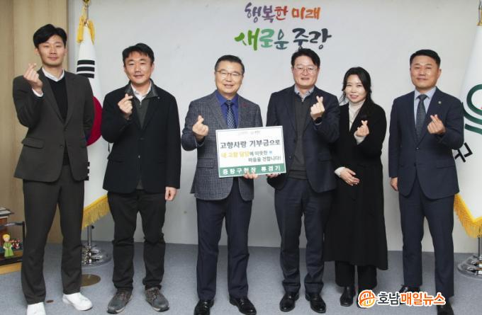 ´ã¾ç±º ´ëÀü¸éÀÌ °íÇâÀÎ ·ù°æ±â Áß¶û±¸Ã»ÀåÀº ´ã¾ç¿¡ °íÇâ»ç¶û±âºÎ±ÝÀ» ±âŹÇÏ¸ç °íÇâ¿¡ ´ëÇÑ ¾ÖÁ¤À» µå·¯³½ °ÍÀ¸·Î º¸ÀδÙ. ´ã¾ç±º°ú Áß¶û±¸´Â 2019³â »ó»ý ¹ßÀüÀ» À§ÇÑ ¿ìÈ£ ÇùÁ¤À» ü°áÇÑ ÀÌÈÄ Áö¼ÓÀûÀ¸·Î ±³·ùÇØ¿À°í ÀÖ´Ù. ±âʽÄÀº ´ã¾ç±ºÀÇ Á¦¾ÈÀ¸·Î ¼¿ï Áß¶û±¸Ã»¿¡¼ ÁøÇàÇß´Ù.