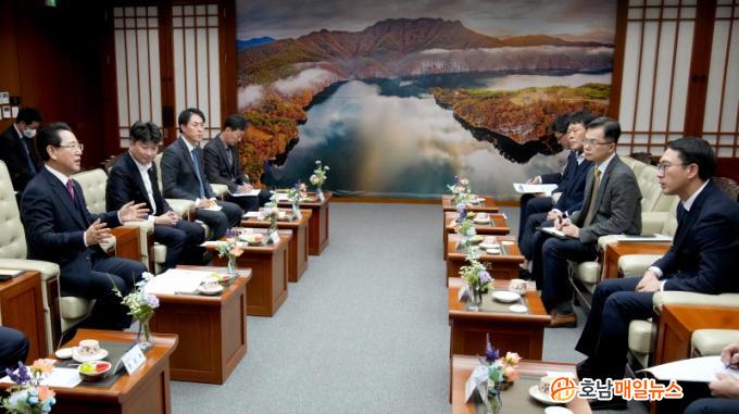 ÀÌ¾î ¿¸° ÇùÀÇȸ¿¡¼´Â ¹®±ÝÁÖ Àü³²µµ ÇàÁ¤ºÎÁö»ç¿Í ±âȹÁ¶Á¤½ÇÀå, Àü·«»ê¾÷±¹Àå, °ü±¤¹®ÈüÀ°±¹Àå, °Ç¼³±³Åë±¹Àå µîÀÌ Âü¼®ÇßÀ¸¸ç, Çö¾ÈÀ» ÇϳªÇϳª ²Ä²ÄÇÏ°Ô ¼³¸íÇϰí Áö¿øÀ» ¿äûÇß´Ù. ±¹ÅäºÎ °ü°èÀڵ鵵 Àü³²µµ Çö¾È¿¡ ±íÀº °ü½ÉÀ» º¸¿´´Ù.