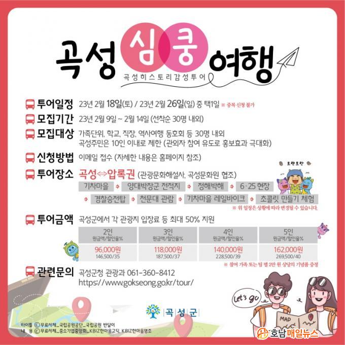 ÇÑÆí, À̹ø ÆÔÅõ¾î ½Åû°ú ÀÚ¼¼ÇÑ »çÇ×Àº ±º ´©¸®Áý(https://www.gokseong.go.kr/), ±º ¹®È°ü±¤´©¸®Áý(https://www.gokseong.go.kr/tour/), ÀνºÅ¸±×·¥(°î¼º±º gokseong_love / ¼¶Áø°±âÂ÷¸¶À» gstrainvillage_official)¿¡¼ È®ÀÎÇÒ ¼ö ÀÖ´Ù. ¾È³»¹®À» Âü°íÇØ ½Åû¼¿Í °³ÀÎÁ¤º¸µ¿ÀǼ¸¦ Á¦Ãâ ÈÄ ±º ´ã´çÀÚ(¢Ï061-360-8412)ÀÇ À¯¼± ¾È³»¸¦ ¹ÞÀ¸¸é ÀÌ¿ë °¡´ÉÇÏ´Ù.