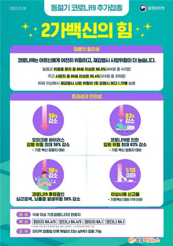 Áúº´°ü¸®Ã»¿¡ µû¸£¸é Àç°¨¿° ÃßÁ¤»ç·Ê ºñÀ²Àº Áö³ 1¿ù 2ÁÖÂ÷ 20%´ë¸¦ ³Ñ¾î¼¹°í, Áõ°¡¼¼°¡ Áö¼ÓµÇ°í ÀÖ¾î 2°¡ ¹é½Å Á¢Á¾À» ÅëÇÑ Àç°¨¿° ¿¹¹æÀÌ ¸Å¿ì Áß¿äÇÏ´Ù. Àç°¨¿°Àº ù °¨¿°º¸´Ù Áõ»óÀÌ ¹Ì¾àÇϰí À§ÁßÁõ¡¤»ç¸Á À§ÇèÀÌ ³·À» °ÍÀ¸·Î ¿¹»óÇÏÁö¸¸ 60¼¼ ÀÌ»ó 2ȸ °¨¿°ÀÚÀÇ Ä¡¸í·üÀº 0.43%·Î 1ȸ °¨¿° ½Ã Ä¡¸í·ü(0.25%)º¸´Ù 1.72¹è ³ô¾Ò´Ù.2°¡ ¹é½ÅÀº ¿À¹ÌÅ©·Ð ¹ÙÀÌ·¯½º °¨¿°°ú ÀÌ·Î ÀÎÇÑ ÀÔ¿ø À§ÇèÀ» ÇöÀúÈ÷ °¨¼Ò½Ã۴µ¥ È¿°úÀûÀ̸ç, ÀÌ»ó»ç·Ê ½Å°íÀ²µµ ±âÁ¸ ¹é½ÅÀÇ 10ºÐÀÇ 1 ÀÌÇÏ·Î ³ªÅ¸³µ´Ù.
