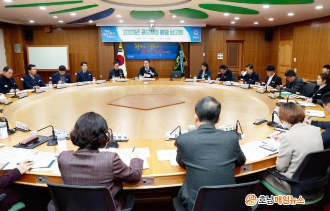 À̳¯ º¸°íȸ´Â ±¸º¹±Ô ±º¼ö ÁÖÀç·Î ºÎ±º¼ö, Àü ½Ç°ú¼ÒÀå µîÀÌ Âü¼®ÇÏ¿© 2023³â È®º¸ °¡´ÉÇÑ °ø¸ð»ç¾÷¿¡ ´ëÇÑ Áö¿ø °èȹ ¹× Àü·«Àû ÃßÁø ¹æÇâ¿¡ ´ëÇØ ³íÀǸ¦ ÁøÇàÇß´Ù. À̹ø º¸°íȸ¿¡¼ ´Ù·é °ø¸ð»ç¾÷Àº ¹®È¡¤°ü±¤, ³ó¾÷Ãà»ê, µµ½Ã°³¹ß, µµ·Î±³Åë µî °¢ ºÐ¾ß¿¡¼ °ø¸ð ÁßÀ̰ųª Áö¿ø °èȹ ÁßÀÎ »ç¾÷µé·Î »ç¾÷ºñ ±Ô¸ð·Î´Â 414¾ï ¿ø¿¡ À°¹ÚÇÑ´Ù.
