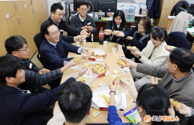 ¸Å´Þ ½Å±Ô Á÷¿øµé°ú ±¸³»½Ä´ç¿¡¼ Á¡½É ½Ä»ç¸¦ Çϴ°¡ ÇÏ¸é °ÝÁÖ¿¡ °ÉÃÄ °ú¾÷ºÎ¼ »ç¹«½ÇÀ» Á÷Á¢ ã¾Æ °£½ÄÀ» ³ª´©´Â µî Á÷¿øµé°úÀÇ °ÝÀÇ ¾ø´Â ¼ÒÅë¿¡ ½Ã°£À» ¾Æ³¢Áö ¾Ê°í ÀÖ´Ù.