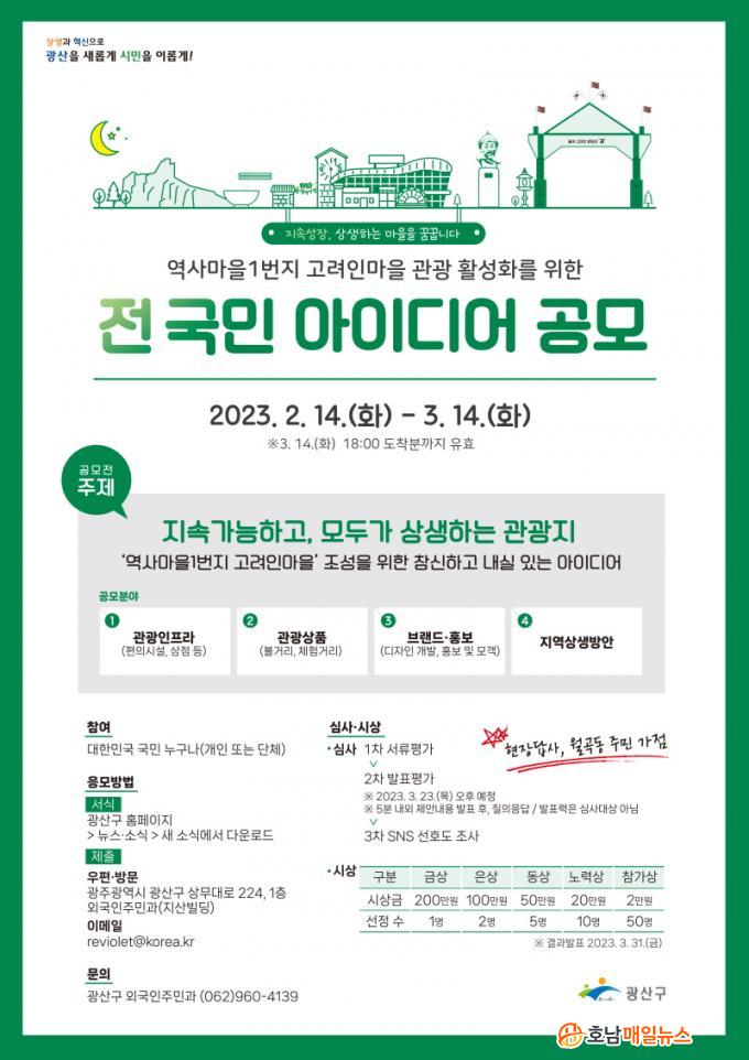 °ø¸ð ±â°£Àº 3¿ù14ÀϱîÁö¸ç, Áö¿ªÀ̳ª ¿¬·É Á¦ÇÑ ¾øÀÌ ´©±¸³ª, ¿ìÆí‧¹æ¹®(±¤ÁÖ ±¤»ê±¸ ¿Ü±¹ÀÎÁֹΰú) ¶Ç´Â À̸ÞÀÏ(reviolet@korea.kr)·Î Âü¿©ÇÒ ¼ö ÀÖ´Ù. Á¦Ãâ¾ç½ÄÀº ±¤»ê±¸ ´©¸®Áý(www.gwangsan.go.kr) ¡®»õ ¼Ò½Ä¡¯¿¡¼ ³»·Á ¹ÞÀ¸¸é µÈ´Ù.