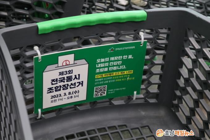 ƯÈ÷, ³óÇù Çϳª·Î¸¶Æ® īƮ¿¡ Á¦3ȸ Àü±¹µ¿½ÃÁ¶ÇÕÀå ¼±°ÅÁ¤º¸°¡ Æ÷ÇԵǾî ÀÖ´Â ±¤°íÆÇÀ» ¼³Ä¡ÇÏ¿© Á¶ÇÕ¿øÀÌ ½±°Ô ¼±°ÅÁ¤º¸¸¦ ¾Ë ¼ö ÀÖµµ·Ï ÇÏ¿´À¸¸ç ¸¶Æ® Á¾ÀÌ ¿µ¼öÁõ¿¡´Â ¼±°ÅÀÏ µî ¼±°ÅÁ¤º¸°¡ ÀμâµÇ¾î Á¶ÇÕ¿ø¿¡°Ô Á¦°øµÈ´Ù.